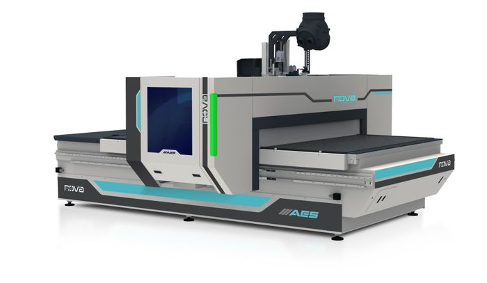 The latest nesting machine available manufactured by the AES Group is the AES Super Nova. This industrial machine is available with different bed sizes and benefits from an enclosed gantry with LED status lights. The machine also has face drilling a and a rotary tool changer for improved prodcutivity and efficiency.